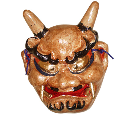 古くから魔除けの意味を持つ鬼の和紙張子面です。彫りが深く立体的に仕上げています。